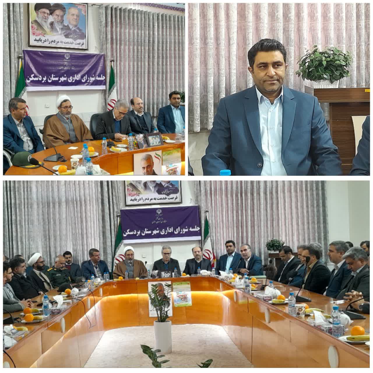 به گزارش صدای بردسکن: محمد جواد صفرنژاد فرماندار شهرستان بردسکن در اولین روز حضور خود در شهرستان در جمع شورای اداری گفت: من با مطالعه و شناخت کامل از پتانسیل‌ها و کمبودها پا به شهرستان بردسکن گذاشتم ین شهرستان در حوزه راه‌ها و نهضت ملی مسکن خیلی کمبود دارد و باید در جهت رفع آنها تلاش کنیم