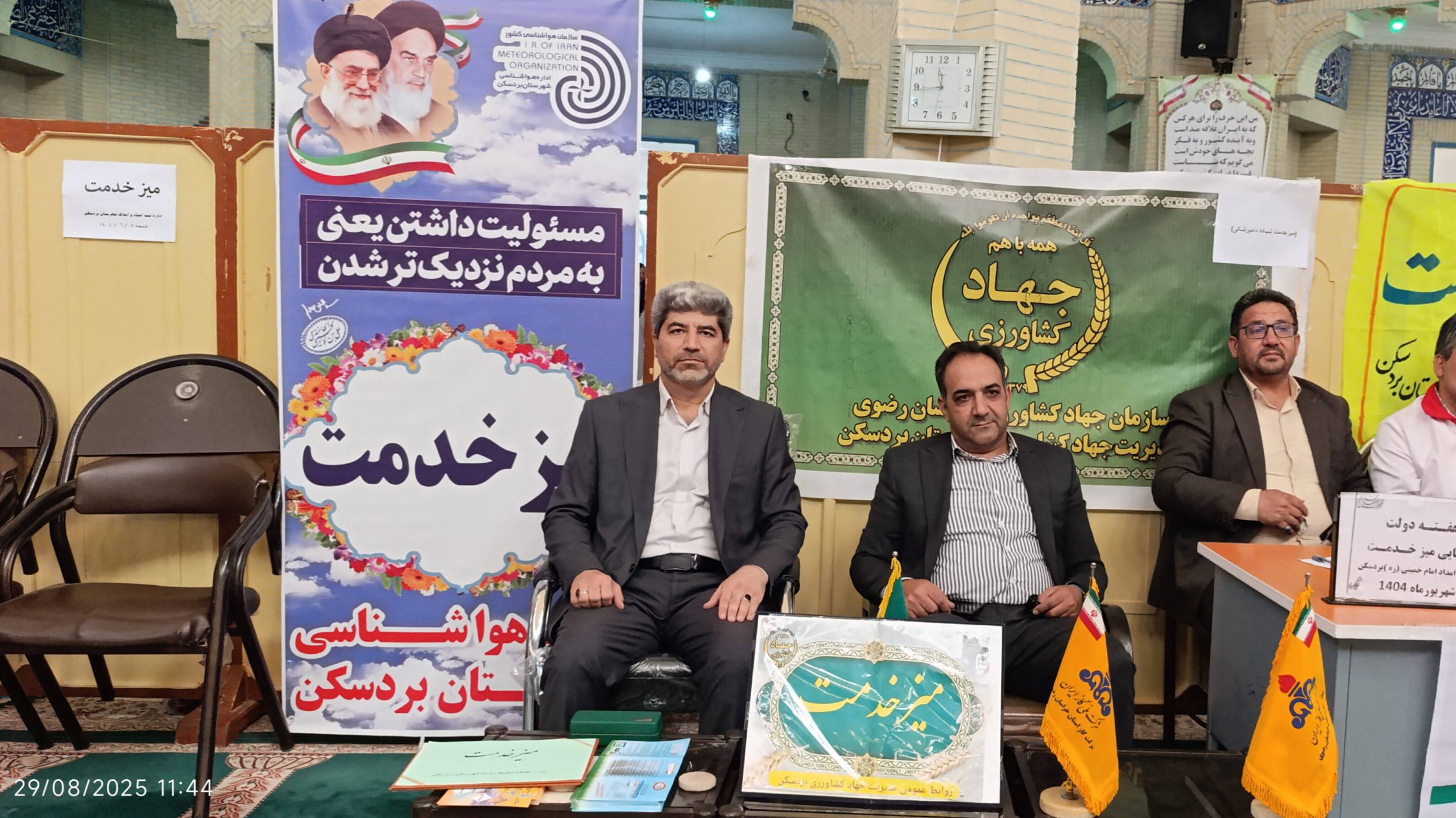 به گزارش پایگاه خبری بردسکن :در راستای گرامیداشت هفته دولت و با هدف تقویت ارتباط مستقیم میان مردم و مسئولان، اداره هواشناسی شهرستان بردسکن با برپایی میز خدمت در محل برگزاری نماز جمعه گامی مؤثر در جهت پاسخگویی و شفافسازی برداشت.