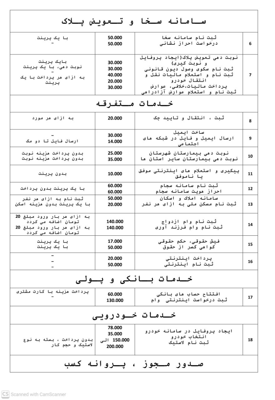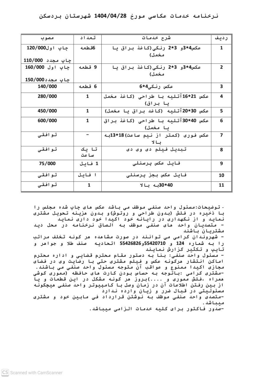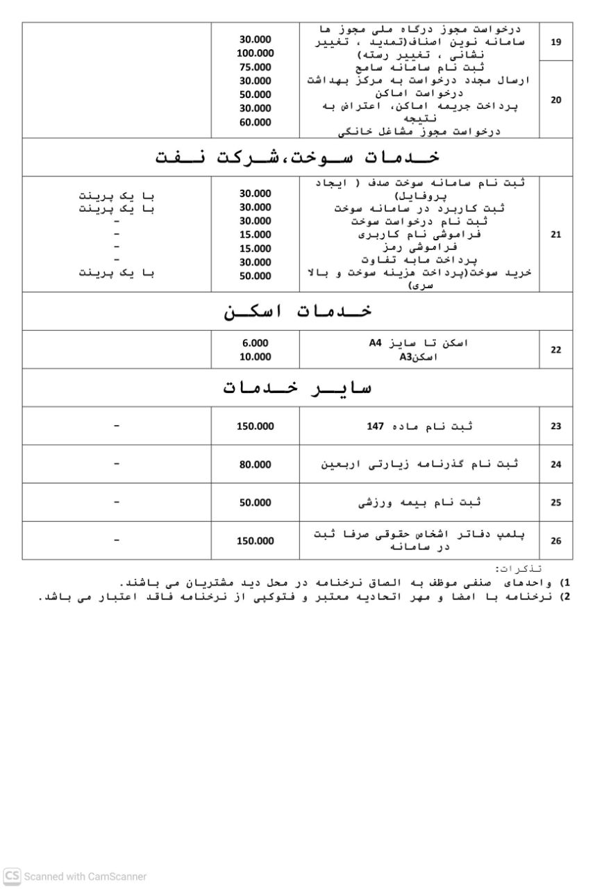 شهروندان محترم میتوانند جهت اطلاع دقیق از جزئیات هر نرخنامه و دریافت پاسخ به سوالات احتمالی، با شمارههای درجشده در ذیل هر بخش تماس حاصل فرمایند.