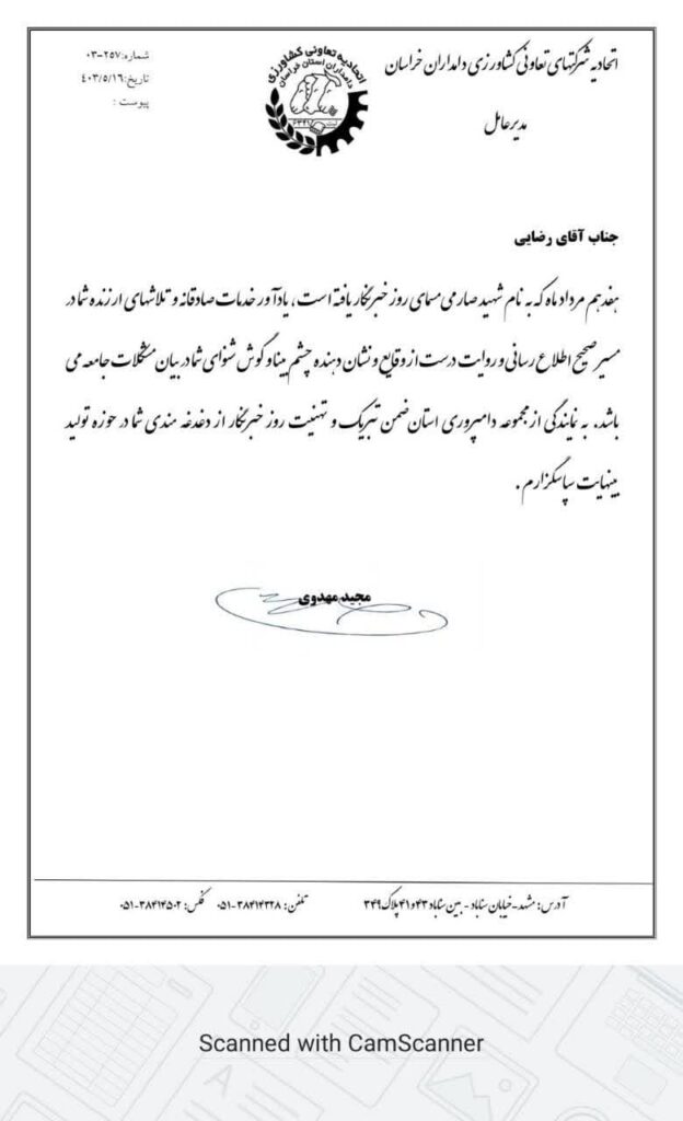 16 مرداد خبر کوتاه, رسانه, کشاورزی و دامداری ارسال توسط علی رضائی ۱۴۰۴-۰۳-۱۴ ۰ مجید مهدوی مدیر عامل اتحادیه شرکتهای تعاونی کشاورزی و دامداران خراسان در پیامی ۱۷ مرداد روز خبرنگار را تبریک گفت ادامه مطلب